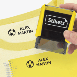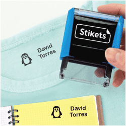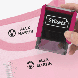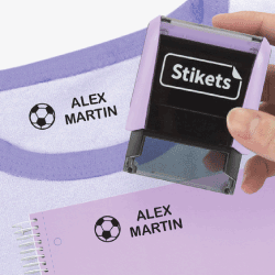 Stikets personalised stamps offer a quick, clean way to label clothing, paper, and school supplies. Simply press the stamp firmly on a flat surface to make a clear, long-lasting mark. Each stamp comes pre-assembled and ready to use — just insert the ink pad and stamp.